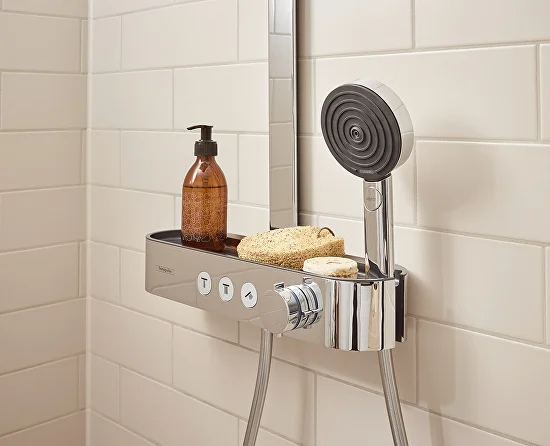 Diametri 260 mm bo‘lgan, og‘ish burchagi sozlanadigan Pulsify Showerpipe dush tizimining yuqori dushi ostida siz og‘ir ish kunidan keyin to‘liq dam olishingiz mumkin. Oqim turlari to‘g‘ridan-to‘g‘ri aralashtirgichdagi tugmani bosish orqali o‘zgartiriladi yoki qo‘l dushga o‘tkaziladi. ShowerTablet termostatiga nafaqat harorat va suv bosimi regulyatorlari o‘rnatilgan: uzunligi 40 santimetrdan ortiq javon qo‘l dushini o‘rnatish va dush geli, shampun saqlash uchun ham xizmat qiladi.
